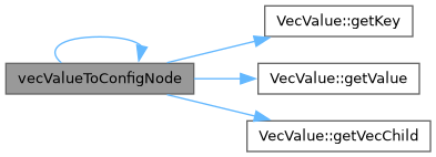 References VecValue::getKey(), VecValue::getValue(), VecValue::getVecChild(), and vecValueToConfigNode().